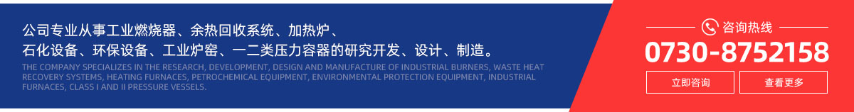 公司專業從事工業燃燒器及其智能化控制系統、余熱回收系統、加熱爐及各類爐配件、石化設備及配件、環保設備、工業爐窯及其輔助設備配件、一二類壓力容器的研究開發、設計、制造。